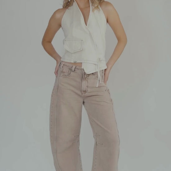 Este pantalón burbuja en tono café es la elección perfecta para un look relajado y moderno. Con un corte suelto, silueta oversized y detalles funcionales, como bolsillos amplios, combina comodidad y estilo en una sola prenda.