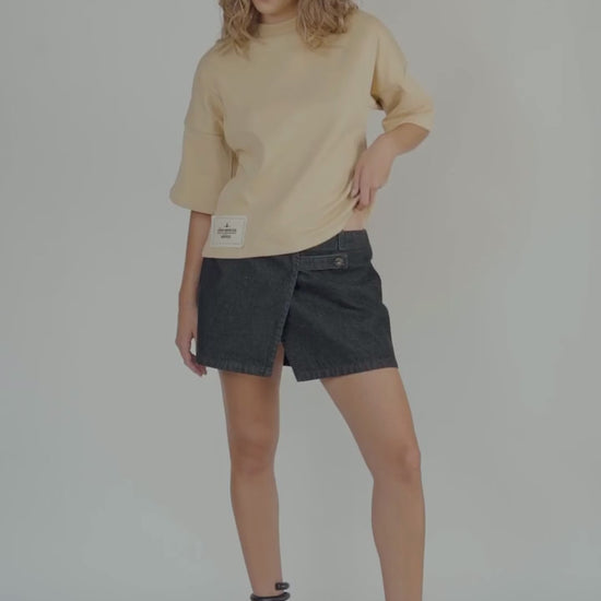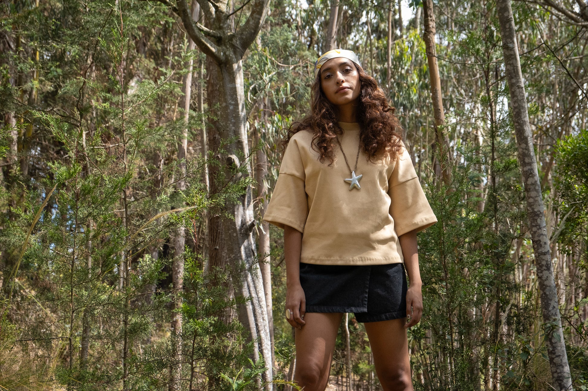 El diseño minimalista en color nude realza la pureza de su confección, mientras que su silueta amplia brinda libertad de movimiento sin sacrificar el estilo. Una pieza esencial que combina lo funcional con lo auténtico.